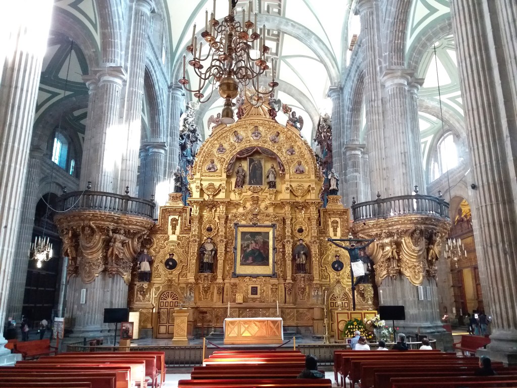 As time was at a premium, I woke up early for the sake of maximizing my exotic Mexican experience. The Mexico City Metropolitan Cathedral, aka the Metropolitan Cathedral of the Assumption of the Most Blessed Virgin Mary into Heaven, was my first stop. I was impressed by its architectural grandeur and exquisite façades from the previous night’s exploration. Located just a few steps north of the Zócalo, the cathedral is a monumental work built in an amalgamation of architectural styles encompassing Gothic, Baroque, Churrigueresque, and Neoclassical. The reason for the variations in design is due to its prolonged construction process that lasted across three centuries (1573 to 1813), during which fashion and preference changed between generations.