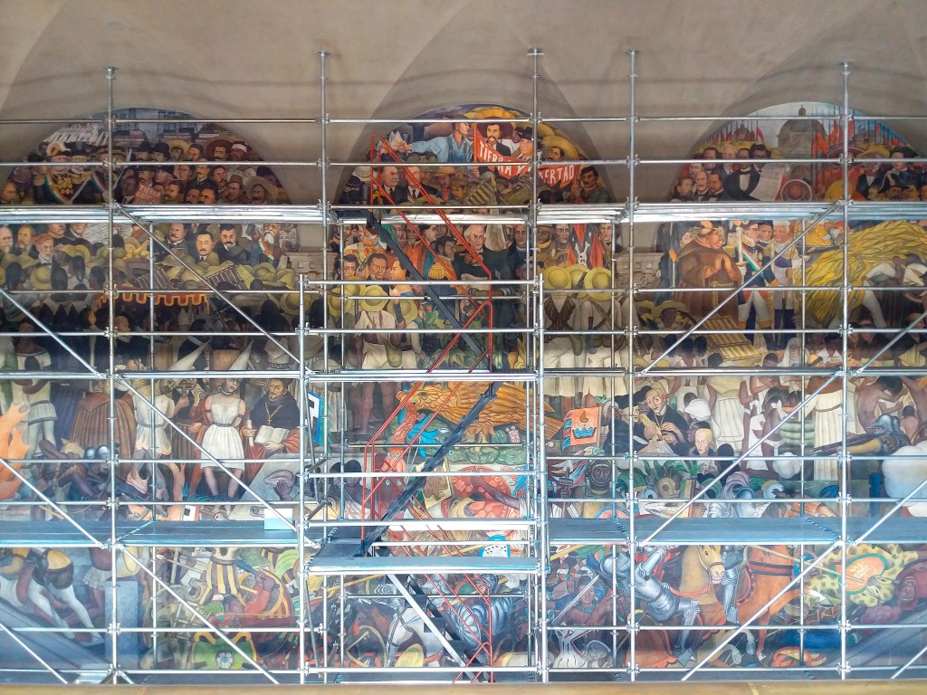 The National Palace is a great attraction itself but many tourists gravitate to this landmark for the famous, awe-inspiring “The Epic of the Mexican People” mural painted by Diego Rivera. Covering an area of 450 m² in the main stairwell and the walls of the second floor, the enormous mural is structured as a triptych, depicting the history of Mexico from ancient times to the Conquest and the early and mid-20th century. It’s a pity that the masterpiece was under maintenance with scaffolding against it, but I was still impressed by its size, details, and stories.